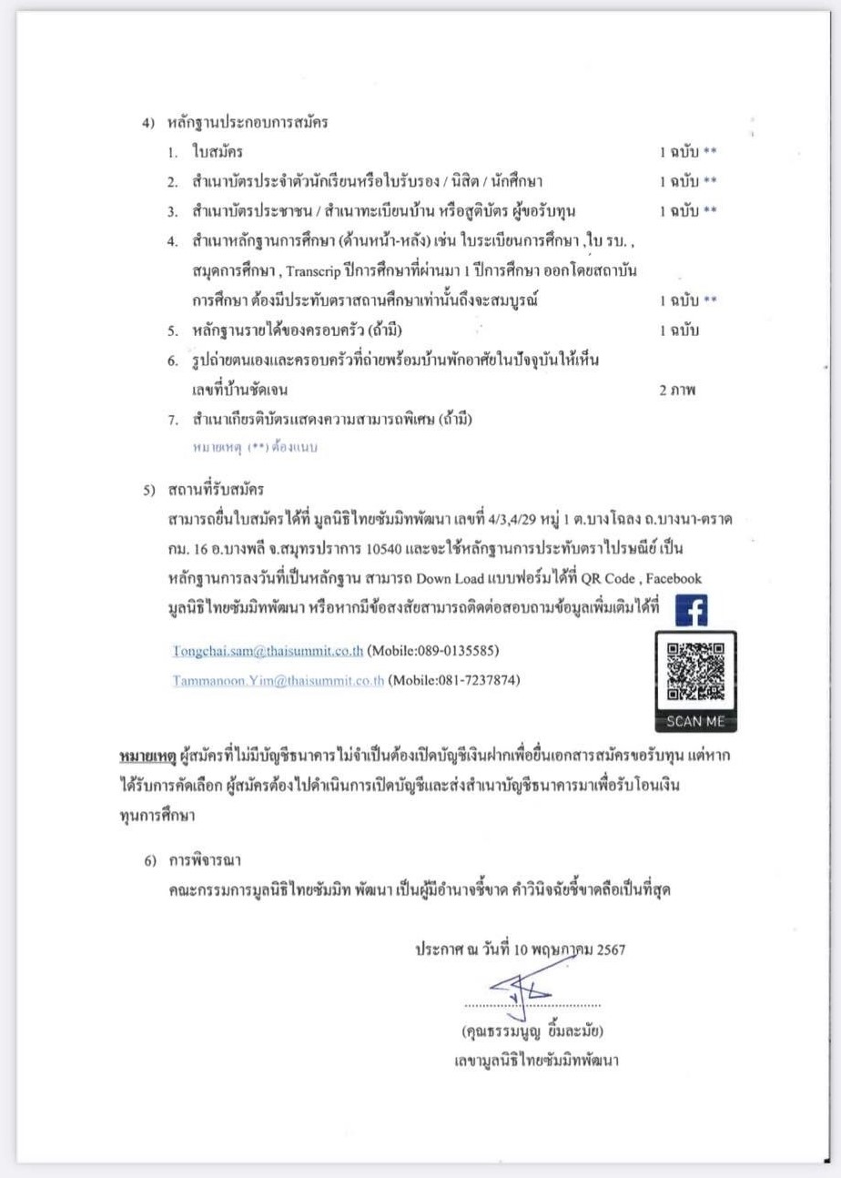 มูลนิธิไทยซัมมิทพัฒนา เปิดโครงการมอบทุนการศึกษา ประจำปี 2567