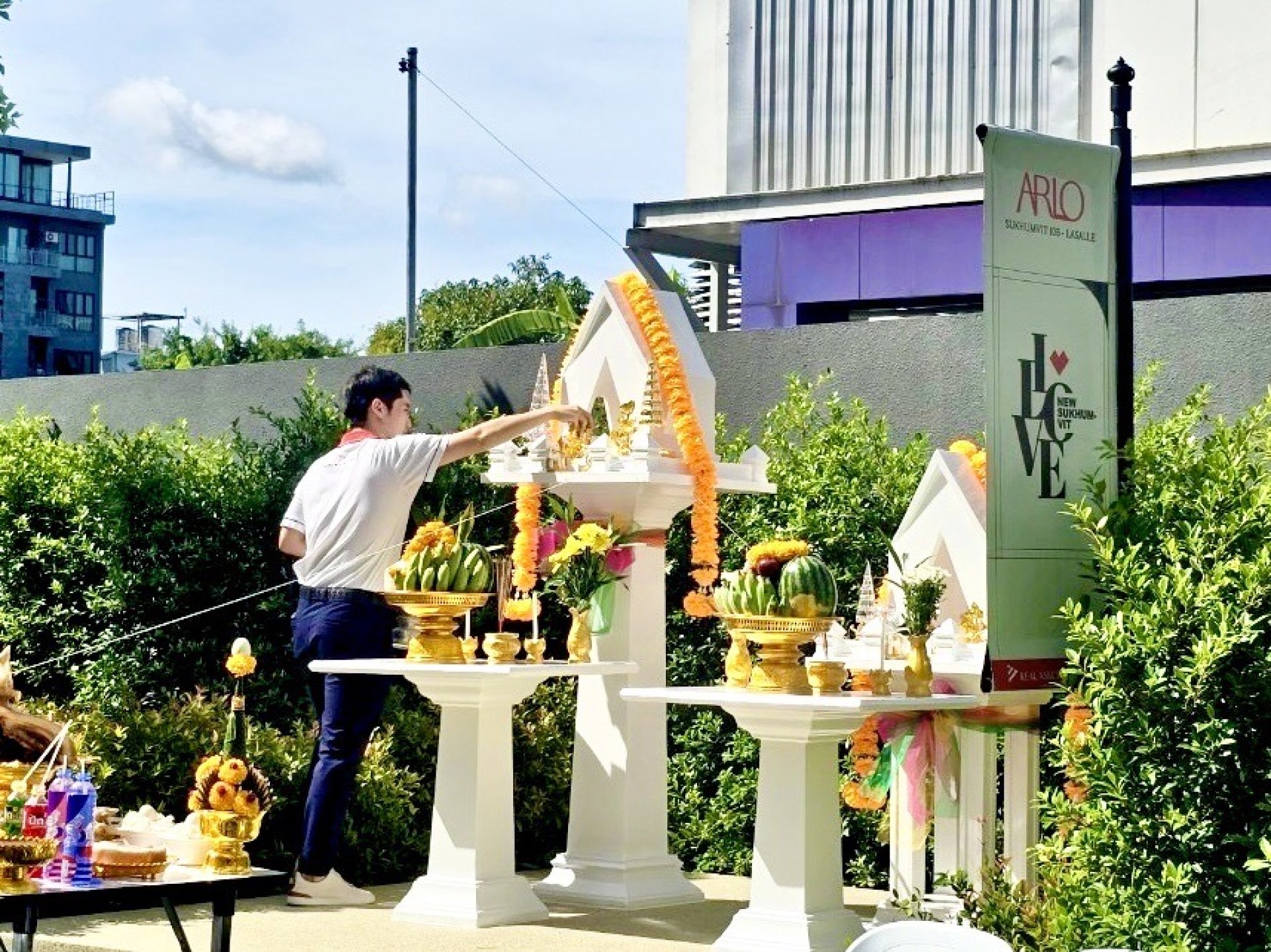 คอนโดมิเนียมใหม่ โครงการ ARLO Sukhumvit105-Lasalle ได้จัดพิธีตั้งศาลพระพรหม และศาลตายาย ภายในโครงการ เมื่อช่วงเช้าที่ผ่านมาของวันที่ 6 มิถุนายน 2567