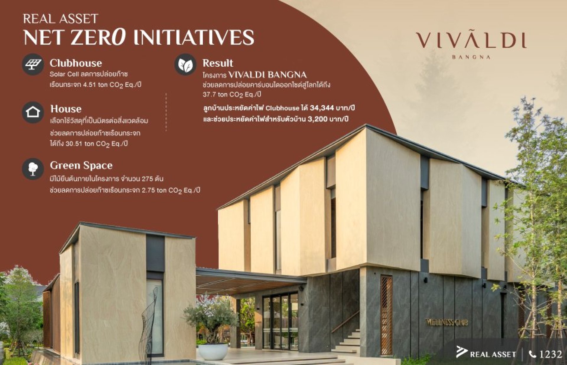 REAL ASSET มุ่งมั่นในการสร้างคุณภาพชีวิตที่ดีอย่างยั่งยืน โดยการพัฒนาโครงการในแบบ 'NET ZERO' หรือการลดการปล่อยก๊าซเรือนกระจกสุทธิเป็นศูนย์ ซึ่งจะส่งผลดีโดยตรงทั้งต่อลูกบ้าน และโลกของเรา