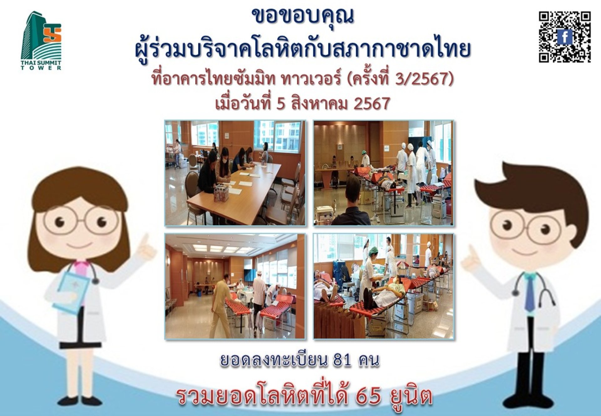 Thai Summit Tower ขอขอบคุณผู้เข้าร่วมบริจาคโลหิตให้กับสภากาชาดไทย (ครั้งที่ 3/2567)