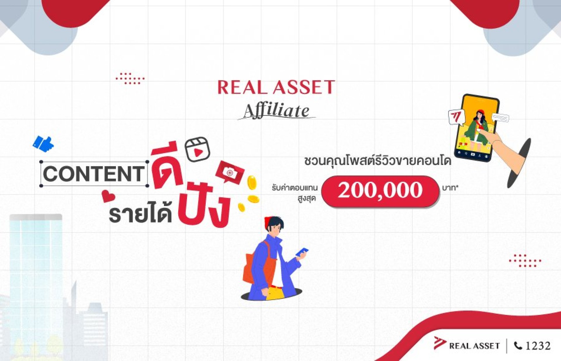 REAL ASSET AFFILIATE | Content ดี รายได้ปัง ชวนคุณโพสต์รีวิวขายคอนโด รับค่าตอบแทนสูงสุด 200,000 บาท*