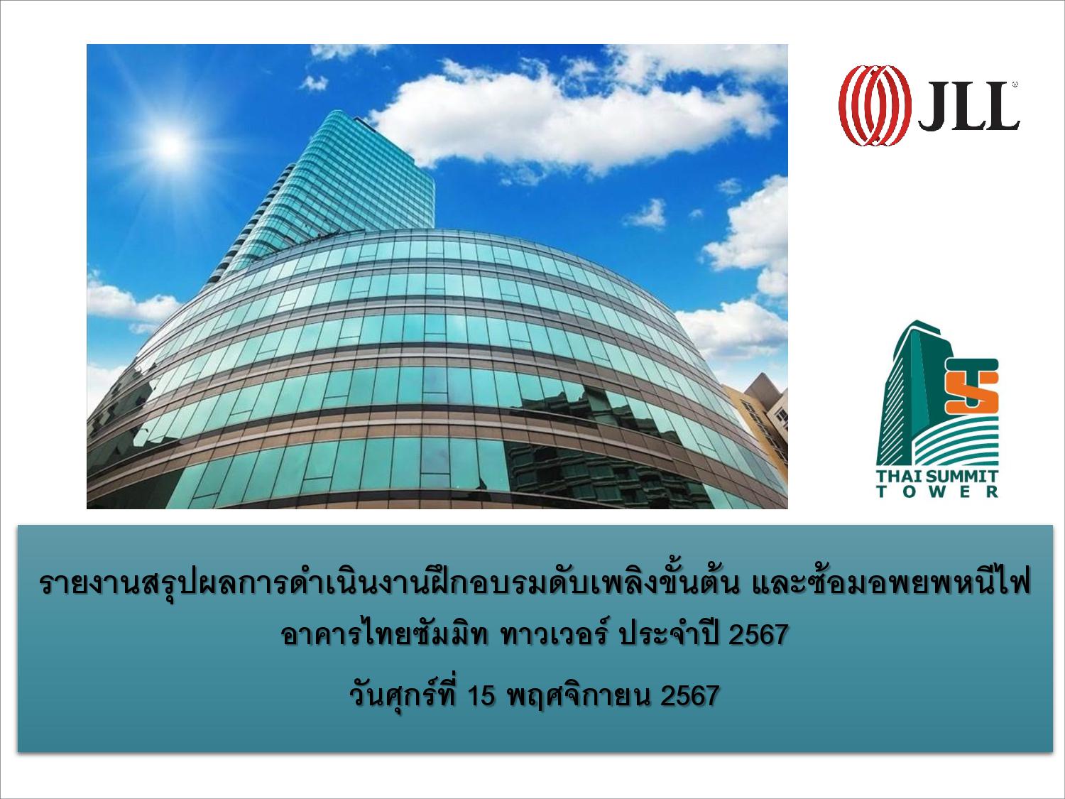 Thai Summit Tower ขอขอบคุณผู้เข้าร่วมกิจกรรมฝึกอบรมดับเพลิงขั้นต้น และฝึกซ้อมอพยพหนีไฟ ประจำปี 2567 ของอาคารไทยซัมมิท ทาวเวอร์ เมื่อวันที่ 15 พฤศจิกายน 2567